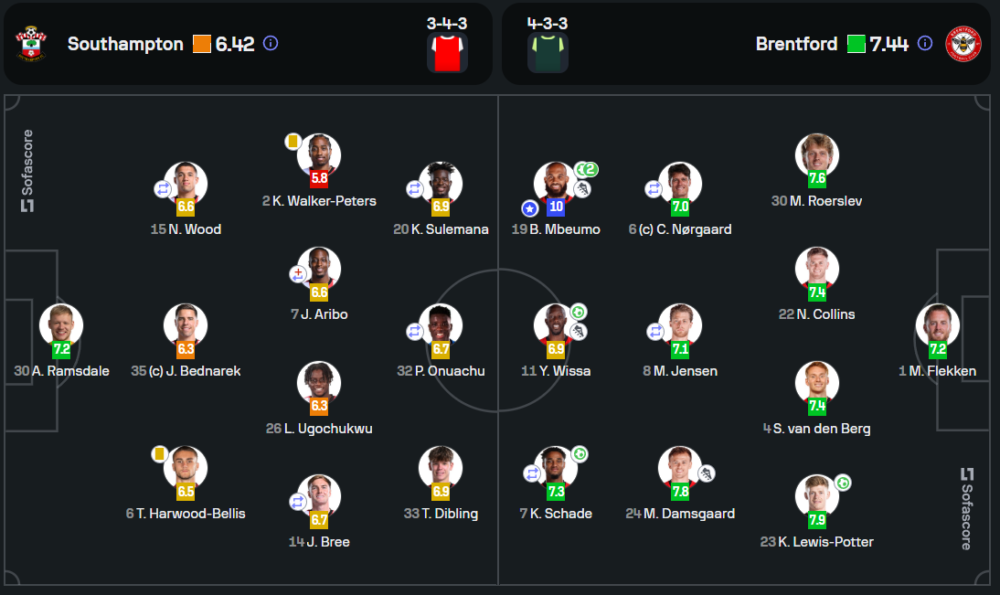 เกมนี้ เบรนท์ฟอร์ด มาในระบบ 4-3-3 ที่เน้นการเพรสซิ่งสูงและการเปิดเกมรุกจากด้านข้าง โดยมี เอ็มบูเอโม และ เชด ที่ใช้ความเร็วโจมตีคู่แข่ง ขณะที่ เซาแธมป์ตัน ใช้แผน 3-4-3 แต่ขาดความแน่นอนในแดนกลาง ส่งผลให้เสียบอลในพื้นที่อันตรายหลายครั้ง บ้านกีฬา เห็นได้ชัดว่าเบรนท์ฟอร์ดมีความลงตัวมากกว่าในเกมนี้