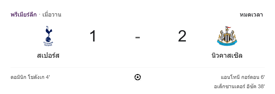 - ⚽ 38’ อเล็กซานเดอร์ อิซัค ยิงประตูขึ้นนำ 2-1 ให้กับนิวคาสเซิล