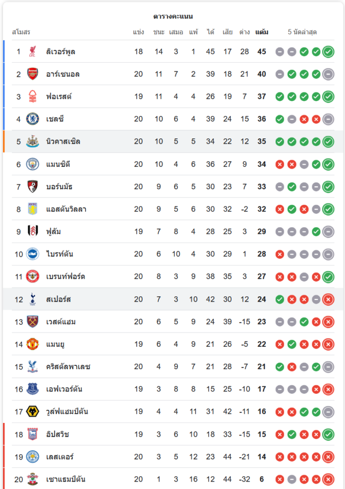 นิวคาสเซิล ขยับขึ้นมาอยู่ที่ 5 ของตารางพรีเมียร์ลีก ด้วย 35 คะแนน ส่วนสเปอร์สอยู่ในอันดับที่ 12 มี 24 คะแนนจาก 20 นัด สถานการณ์เริ่มวิกฤตหากยังคงฟอร์มการเล่นเช่นนี้