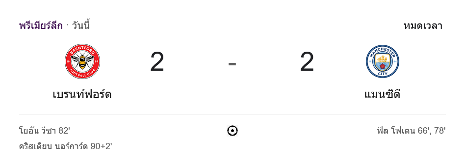 จาก : ผลบอลสด พรีเมียร์ลีก 2024 ระหว่าง เบรนท์ฟอร์ด 2-2 แมนเชสเตอร์ ซิตี้ วันนี้ 15/1/68 – บ้านกีฬา