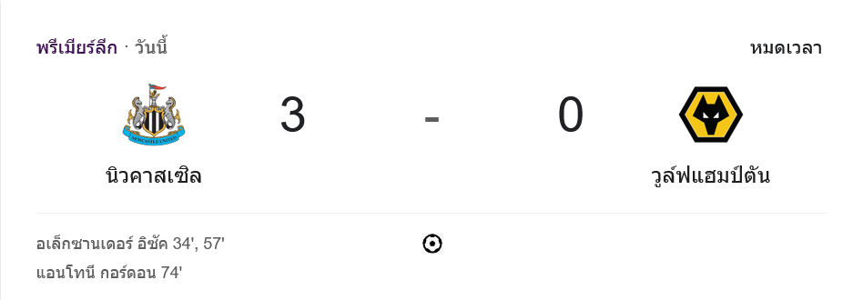 ผลบอลสด พรีเมียร์ลีก 2024 ที่สนามเซนต์เจมส์พาร์ค นิวคาสเซิ่ล ยูไนเต็ด ระเบิดฟอร์มโหดด้วยการเอาชนะ วูล์ฟแฮมป์ตัน 3-0 จากการยิงสองประตูของ อเล็กซานเดอร์ อิซัค และอีกหนึ่งลูกจาก แอนโทนี่ กอร์ดอน ส่งผลให้ “สาลิกาดง” รั้งอันดับ 4 ของตารางคะแนน บ้านผลบอล