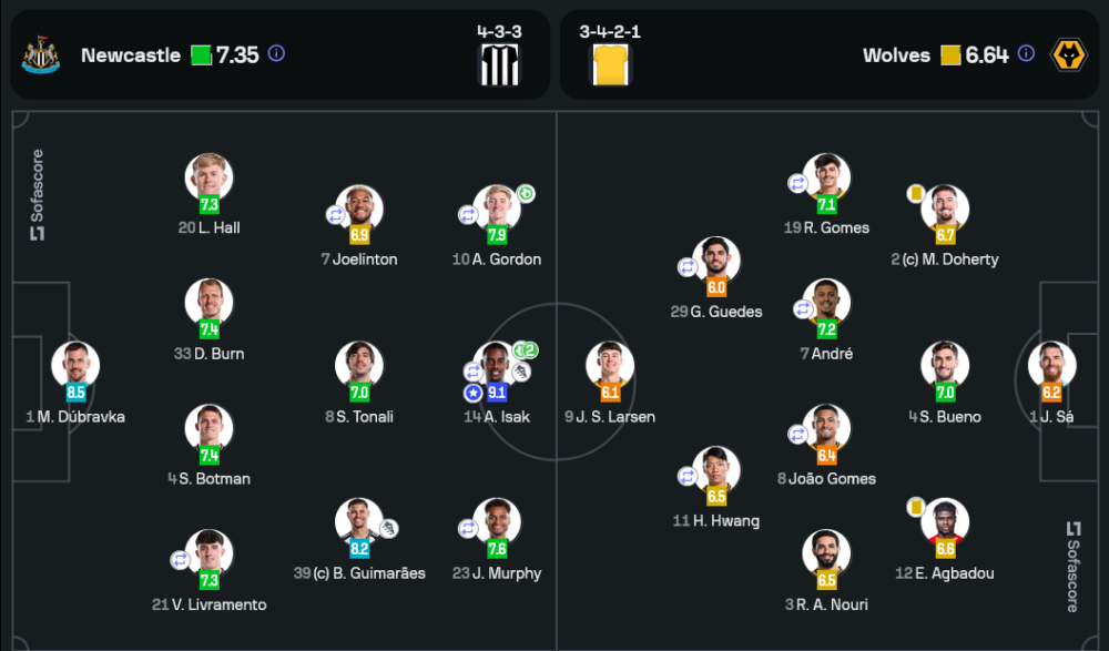 นิวคาสเซิ่ล ยูไนเต็ด ใช้แผน 4-3-3 ที่เน้นการครองบอลในแดนกลางและการเติมเกมรุกจากกองหลัง โดยมี บรูโน่ กิมาไรส์ เป็นหัวใจในการสร้างเกมรุก และ อเล็กซานเดอร์ อิซัค รับบทจบสกอร์ วูล์ฟแฮมป์ตันใช้แผน 3-4-2-1 แต่ไม่สามารถต้านทานการบุกที่หลากหลายของเจ้าบ้านได้ การเปลี่ยนตัวผู้เล่นของทีมเยือนไม่ได้ช่วยเพิ่มความแข็งแกร่งในการโจมตี