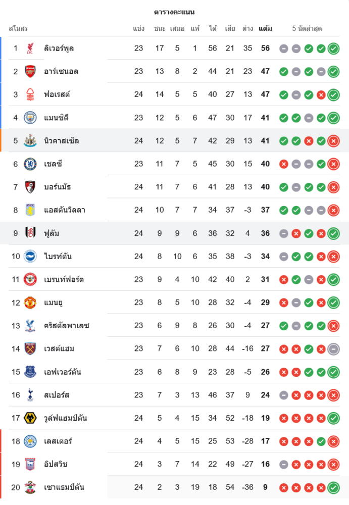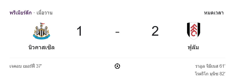 จาก : ผลบอลสด พรีเมียร์ลีก 2024 ระหว่าง นิวคาสเซิ่ล ยูไนเต็ด 1-2 ฟูแล่ม วันนี้ 1/2/68 – บ้านกีฬา