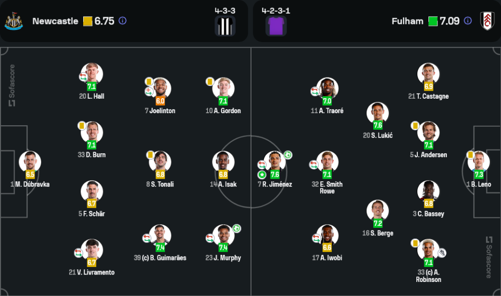 นิวคาสเซิ่ล ยูไนเต็ด ยังคงยึดแผน 4-3-3 เน้นการโจมตีจากริมเส้นโดยใช้ความเร็วของ เมอร์ฟี่ และ กอร์ดอน แต่ปัญหาใหญ่คือขาดความแม่นยำในจังหวะสุดท้าย รวมถึงความผิดพลาดในการจัดระเบียบแนวรับ ทำให้เปิดพื้นที่ให้ฟูแล่มเจาะเข้ามาได้บ่อยครั้ง