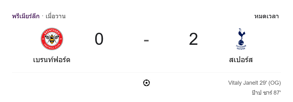 จาก : ผลบอลสด พรีเมียร์ลีก 2024 ระหว่าง เบรนท์ฟอร์ด 0-2 ท็อตแน่ม ฮ็อทสเปอร์ วันนี้ 2/2/68 – บ้านกีฬา