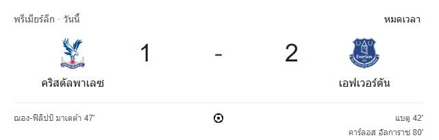 - นาทีที่ 50 กรรมการเป่านกหวีดจบครึ่งแรก คริสตัล พาเลซ 0-1 เอฟเวอร์ตัน