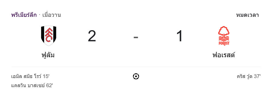จาก : ผลบอลสด พรีเมียร์ลีก 2024 ระหว่าง ฟูแล่ม 2-1 น็อตติ้งแฮม ฟอเรสต์ วันนี้ 15/2/68 – บ้านกีฬา