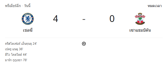 - นาทีที่ 48 กรรมการเป่าหมดครึ่งแรก เชลซี นำ เซาแธมป์ตัน 3-0