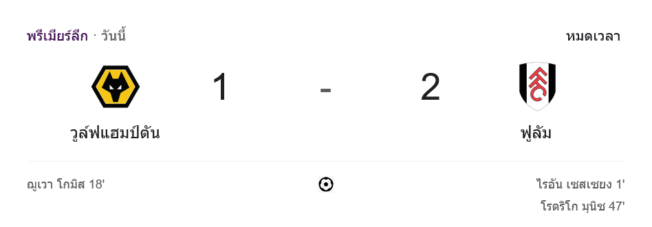 จาก : ผลบอลสด พรีเมียร์ลีก 2024 ระหว่าง วูล์ฟแฮมป์ตัน 1-2 ฟูแล่ม วันนี้ 26/2/68 – บ้านกีฬา