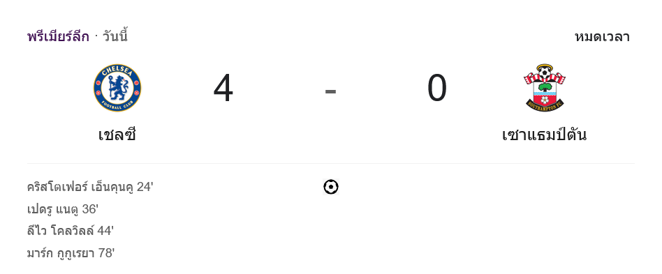 จาก : ผลบอลสด พรีเมียร์ลีก 2024 ระหว่าง เชลซี 4-0 เซาแธมป์ตัน วันนี้ 26/2/68 – บ้านกีฬา