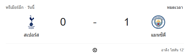 - นาทีที่ 47 กรรมการเป่าหมดครึ่งแรก ท็อตแน่ม ฮ็อตสเปอร์ 0-1 แมนเชสเตอร์ ซิตี้
