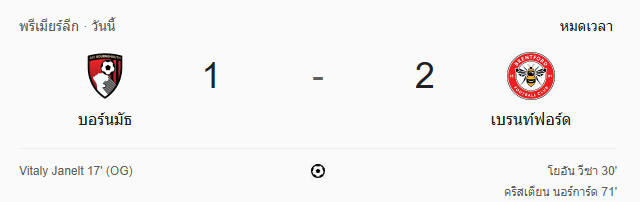 - นาทีที่ 96 กรรมการเป่าหมดเวลา บอร์นมัธ แพ้ เบรนท์ฟอร์ด 1-2!