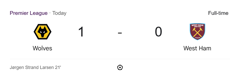 บ้านผลบอล สรุปหลังเกม วูล์ฟแฮมป์ตัน เฉือน เวสต์แฮม 1-0 คว้าชัยสุดมันส์ ศึกพรีเมียร์ลีก 2025