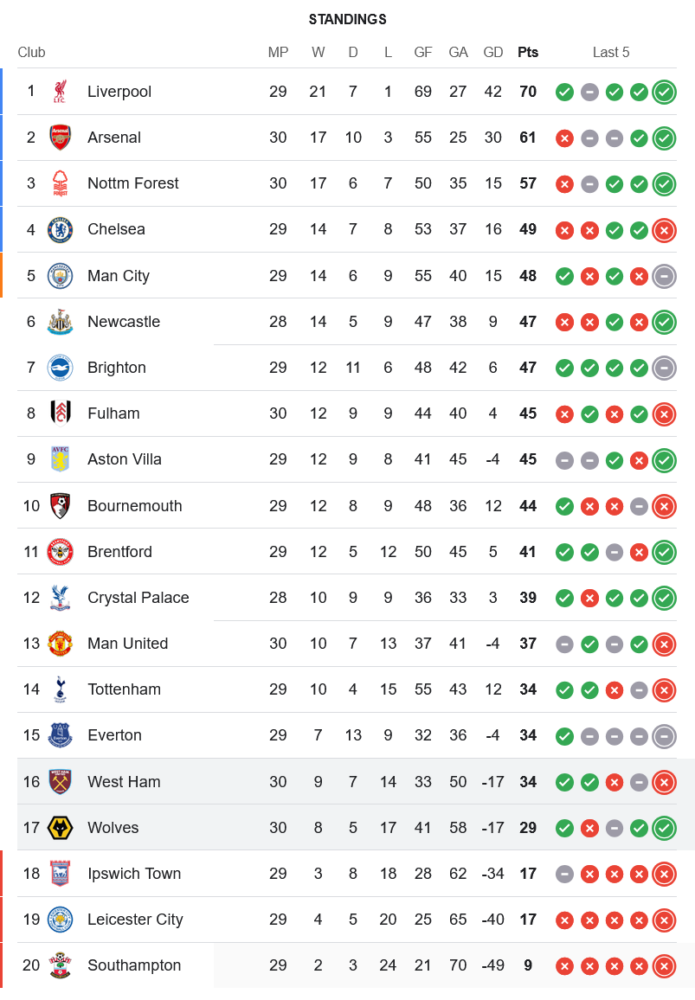 ชัยชนะครั้งนี้ทำให้ วูล์ฟแฮมป์ตัน มีคะแนนรวม 29 คะแนน จาก 30 นัด อยู่อันดับที่ 17 ของตาราง ขณะที่ เวสต์แฮม ยังคงอยู่ในอันดับที่ 16 ด้วยคะแนน 34 คะแนน จาก 30 นัด สถานการณ์ของทั้งสองทีมยังคงต้องดิ้นรนอย่างหนักเพื่อหนีตกชั้น