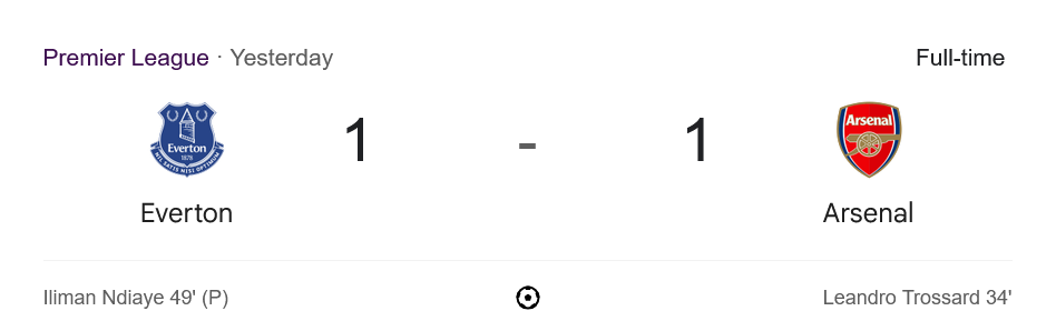 จาก : ผลบอลสด พรีเมียร์ลีก 2025 ระหว่าง เอฟเวอร์ตัน 1-1 อาร์เซนอล วันนี้ 5/4/68 – บ้านกีฬา
