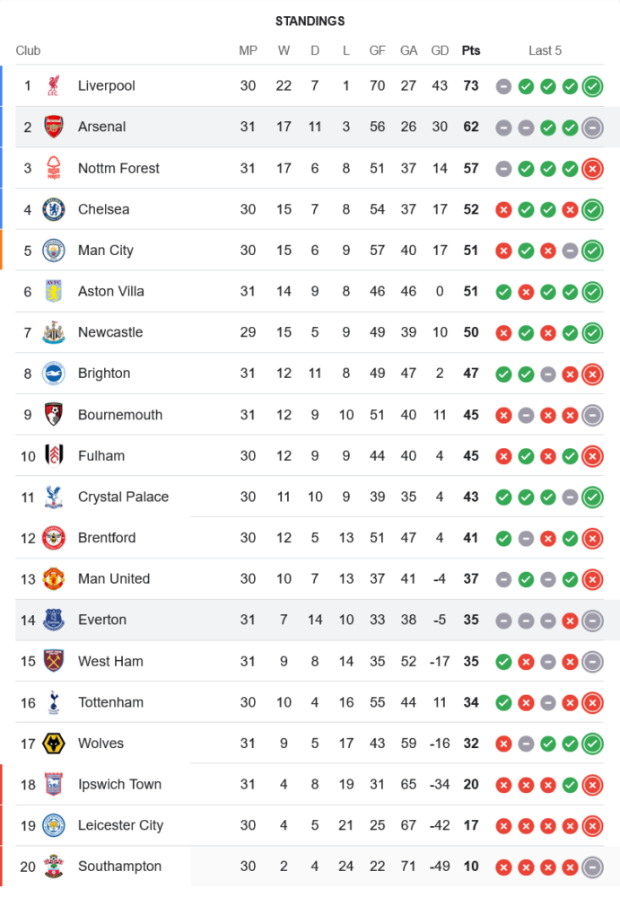 หลังจากที่ เอฟเวอร์ตัน สามารถแบ่งแต้มจาก อาร์เซนอล ไปได้ 1-1 ในการแข่งขันล่าสุด เอฟเวอร์ตัน ยังต้องต่อสู้ในตารางบอลพรีเมียร์ลีกเพื่อหลีกเลี่ยงการตกชั้น โดยการแข่งขันนัดถัดไปของพวกเขาคือการพบกับ น็อตติ้งแฮม ฟอเรสต์ ในวันที่ 12 เมษายน 2025 เวลา 21:00 น. ตามด้วยเกมที่ยากลำบากกับ แมนเชสเตอร์ ซิตี้ ในวันที่ 19 เมษายน 2025 เวลา 21:00 น. บ้านกีฬามองว่านี่เป็นโปรแกรมที่หนักและต้องเก็บแต้มให้ได้ทุกเกมเพื่อการอยู่รอด