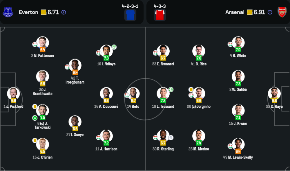 • กองกลาง: จอร์จินโญ่ (6.6), เดแคลน ไรซ์ (7.0), เลอันโดร ทรอสซาร์ด (7.2)