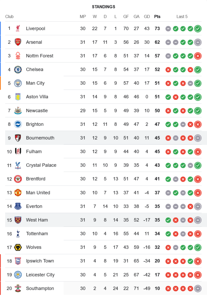 การแข่งขันนี้ทำให้ เวสต์แฮม ยูไนเต็ด ยังคงอยู่ในอันดับที่ 15 ของตารางคะแนนพรีเมียร์ลีก ด้วยคะแนน 35 จาก 31 นัด ซึ่งยังคงต้องการแต้มเพิ่มเพื่อหลีกเลี่ยงการตกชั้น ในขณะที่ บอร์นมัธ มี 45 คะแนนจาก 31 นัด อยู่อันดับที่ 9 ยังคงมีโอกาสที่ดีในการขยับอันดับขึ้นไปสูงกว่าเดิม