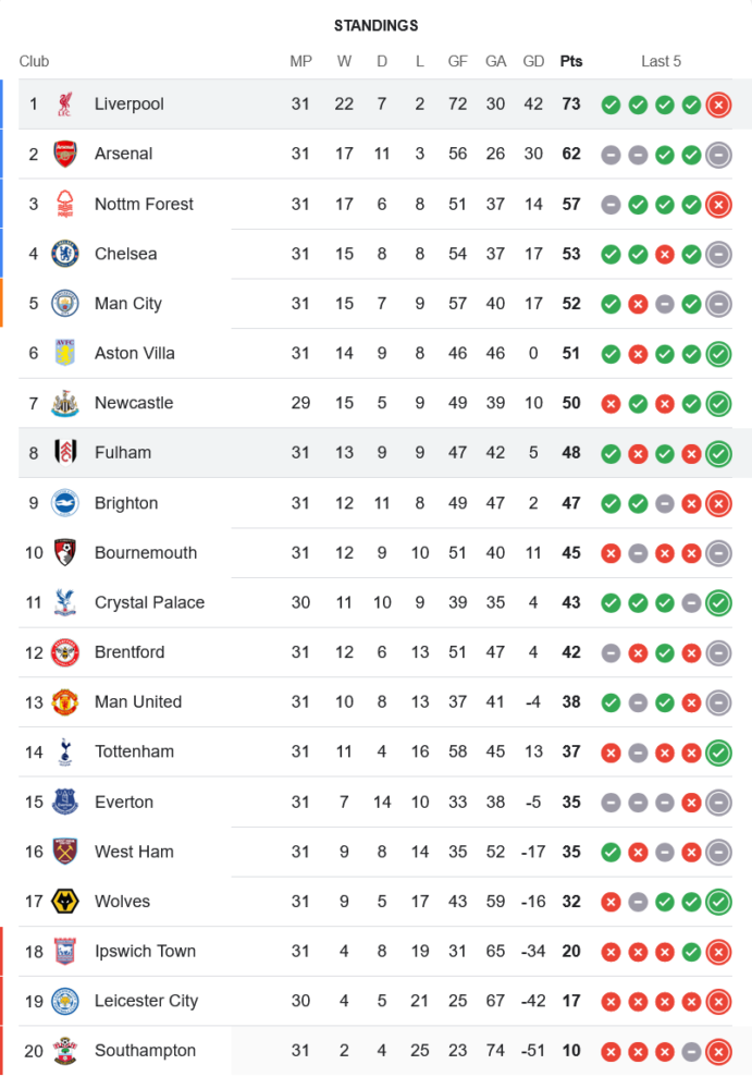 ชัยชนะของ ฟูแล่ม ในเกมนี้ทำให้พวกเขาขึ้นมาอยู่อันดับที่ 8 ของตาราง พรีเมียร์ลีก 2025 ด้วยคะแนนรวม 48 คะแนนจาก 31 นัด ขณะที่ ลิเวอร์พูล ยังคงรั้งอันดับที่ 1 ด้วย 73 คะแนน การเสียคะแนนในนัดนี้อาจทำให้พวกเขาต้องระวังตัวในการแข่งขันที่เหลืออย่างมาก