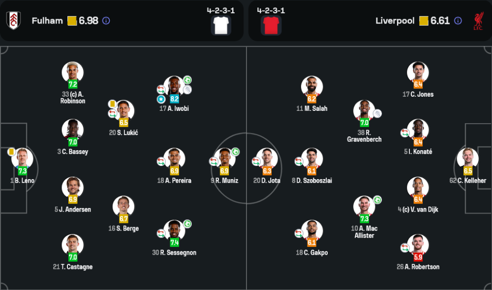 🏆 อเล็กซ์ อิโวบี้ (ฟูแล่ม) เล่นได้อย่างยอดเยี่ยมทั้งเกมรุกและการเชื่อมเกมในแดนกลาง พร้อมกับการทำประตูสำคัญในนาทีที่ 32 ที่ช่วยให้ทีมได้เปรียบอย่างมากในช่วงครึ่งแรก
