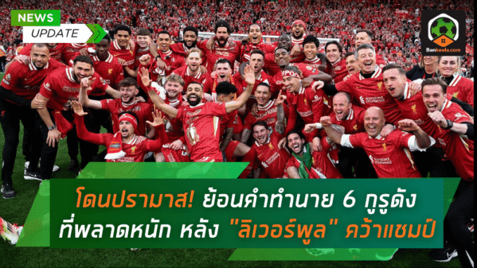 โดนปรามาสแต่แชมป์! ย้อนคำทำนาย 6 กูรูดังที่พลาดหนัก หลัง “ลิเวอร์พูล” คว้าแชมป์พรีเมียร์ลีก 2024/25 แบบเหนือความคาดหมาย