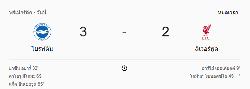 - นาทีที่ 99: จบเกม! ไบรท์ตันเปิดบ้านแซงชนะลิเวอร์พูล 3-2 สุดมัน!