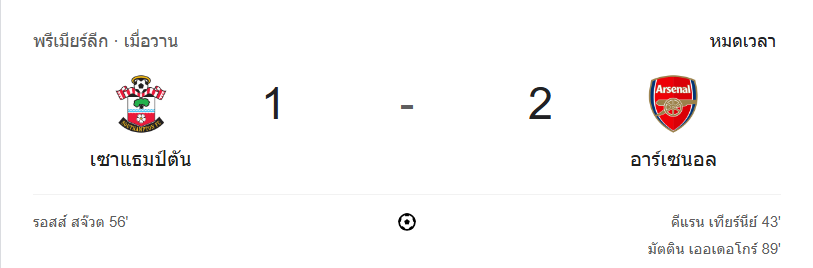 • นาทีที่ 100: จบเกม! อาร์เซนอลบุกเฉือนชนะ เซาแธมป์ตัน 2-1