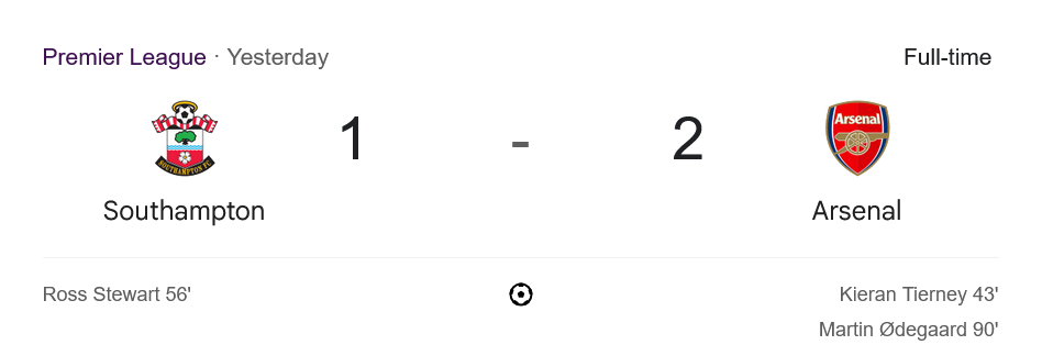 บ้านผลบอล สรุปหลังเกม พรีเมียร์ลีก โอเดการ์ดปิดกล่อง! อาร์เซนอลบุกเฉือนเซาแธมป์ตันทดเจ็บ 2-1 ส่งท้ายฤดูกาลสุดมันส์