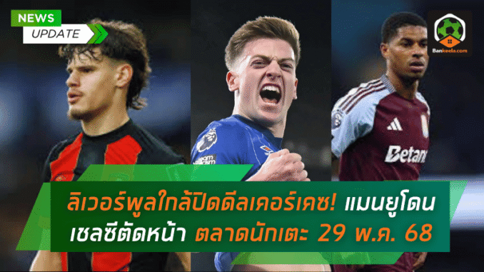ศึกในสนามอาจจบลงแล้ว แต่ศึกนอกสนามกลับเริ่มต้นอย่างดุเดือด! อัปเดตข่าวตลาดนักเตะวันนี้ 29 พฤษภาคม 2568 กลายเป็นเวทีดราม่าระดับบิ๊กทีมทั่วทั้งยุโรป โดยเฉพาะบรรดายักษ์ใหญ่พรีเมียร์ลีกที่ต่างเดินเกมอย่างเร่งด่วนเพื่อเสริมทัพลุยฤดูกาลใหม่ที่กำลังจะมาถึง ซึ่งหนึ่งในดีลที่ร้อนแรงที่สุดคือการที่ ลิเวอร์พูล กำลังปิดดีล มิลอส เคอร์เคซ แบ็กซ้ายดีกรีทีมชาติฮังการีจากบอร์นมัธ ขณะที่ แมนเชสเตอร์ ยูไนเต็ด ต้องเจ็บปวดอีกครั้ง หลังถูก เชลซี ปาดหน้าคว้า เลียม ดีแลป กองหน้าดาวรุ่งที่ตกเป็นเป้าหมายมานาน