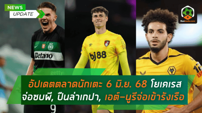เข้าสู่ช่วงกลางปี ตลาดซื้อขายนักเตะกำลังร้อนระอุ และวันที่ 6 มิถุนายน 2568 ก็มีข่าวโยกย้ายและดีลเด่นที่น่าสนใจหลายราย โดยเฉพาะในบรรดาสโมสรยักษ์ใหญ่ของยุโรปที่เดินหน้าเสริมทัพอย่างเต็มสูบ โดยไฮไลต์อยู่ที่ วิคตอร์ โยเคเรส หัวหอกตัวเก่งของสปอร์ติ้ง ลิสบอน ที่มีแนวโน้มย้ายสู่ แมนเชสเตอร์ ยูไนเต็ด, ขณะที่ อาร์เซน่อล เปิดฉากเจรจาดึง เกปา อาร์รีซาบาลาก้า ส่วน แมนเชสเตอร์ ซิตี้ ใกล้คว้าตัวแบ็กซ้ายที่ตามจีบมานาน และ เชลซี มีข่าวดีเกี่ยวกับผู้รักษาประตูทีมชาติฝรั่งเศส