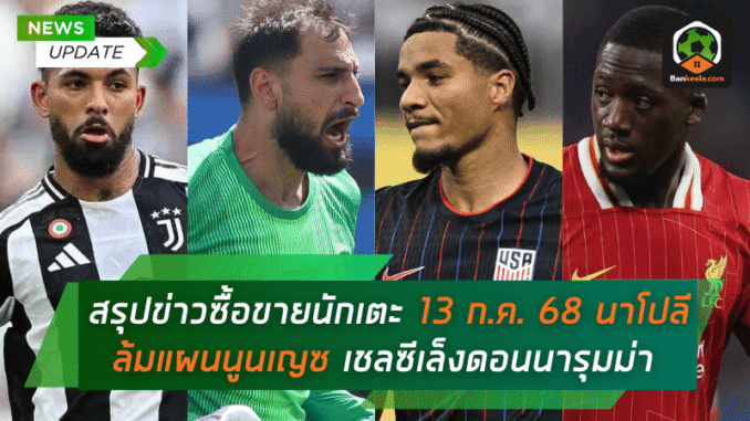 ตลาดซื้อขายนักเตะกลับมาเดือดระอุอีกครั้งในเช้าวันที่ 13 กรกฎาคม 2568 เมื่อหลายสโมสรยักษ์ใหญ่ขยับตัวอย่างจริงจังทั้งดีลที่เป็นทางการและดีลที่กำลังเดินหน้าในเบื้องหลัง โดยเฉพาะ นาโปลี ที่ประกาศถอนตัวจากการไล่ล่าตัว ดาร์วิน นูนเญซ หลังลิเวอร์พูลตั้งค่าตัวสุดโหด ขณะที่ เชลซี กำลังเร่งเจรจาคว้าตัว จานลุยจิ ดอนนารุมม่า มาช่วยอุดรอยรั่วในตำแหน่งผู้รักษาประตู และฝั่ง อาร์เซน่อล ก็เตรียมเปิดตัว วิคตอร์ โยเคเรส อย่างเป็นทางการเร็ว ๆ นี้ ขณะที่ โกนาเต้ ปฏิเสธสัญญาใหม่จากหงส์แดงท่ามกลางกระแสโยกซบเรอัล มาดริด