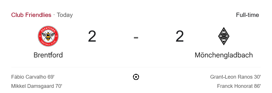 จาก : ผลบอลสด กระชับมิตรสโมสร ระหว่าง เบรนท์ฟอร์ด 2-2 โบรุสเซีย มึนเช่นกลัดบัค วันนี้ 9/8/68 – บ้านกีฬา