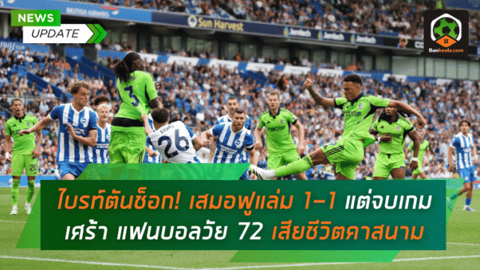 ค่ำคืนที่สนาม เอเม็กซ์ สเตเดี้ยม ถูกบันทึกไว้ทั้งในฐานะเกมเปิดซีซั่นของ พรีเมียร์ลีก และในฐานะความสูญเสียที่สร้างความสะเทือนใจไปทั่ว เมื่อ ไบรท์ตัน แอนด์ โฮฟ อัลเบี้ยน เปิดบ้านทำได้เพียงเสมอ ฟูแล่ม 1-1 พร้อมข่าวเศร้าหลังสิ้นเสียงนกหวีดสุดท้าย แฟนบอลรุ่นใหญ่ของเจ้าถิ่นวัย 72 ปีล้มป่วยกลางสนามและเสียชีวิต แม้ทีมแพทย์พยายามช่วยชีวิตอย่างสุดความสามารถ