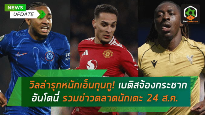 บรรยากาศใน ตลาดนักเตะยุโรป วันที่ 24 สิงหาคม 2568 ยังคงเดือดพล่าน เมื่อมีดีลใหญ่และข่าวลือใหม่ๆ โผล่มาเพียบ แอสตัน วิลล่า เดินหน้าเต็มกำลังเล็งคว้าตัว คริสโตเฟอร์ เอ็นกุนกู แข่งกับสองยักษ์ใหญ่เมืองเบียร์ ขณะที่ เรอัล เบติส ยังคงไม่ลดละความพยายามในการคว้า อันโตนี่ จากแมนเชสเตอร์ ยูไนเต็ด นอกจากนี้ยังมีดีลทางการจากบิ๊กทีมทั่วยุโรปที่สร้างแรงสั่นสะเทือนวงการลูกหนัง