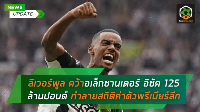 ลิเวอร์พูล สร้างแรงสั่นสะเทือนวงการลูกหนังอังกฤษด้วยการปิดดีล อเล็กซานเดอร์ อิซัค กองหน้าตัวเก่งของ นิวคาสเซิ่ล ยูไนเต็ด ด้วยค่าตัวมหาศาลถึง 125 ล้านปอนด์ (ราว 5,375 ล้านบาท) กลายเป็นดีลที่แพงที่สุดในประวัติศาสตร์ พรีเมียร์ลีก พร้อมเซ็นสัญญายาว 6 ปีเต็ม ถือเป็นการลงทุนครั้งมโหฬารที่แสดงถึงความจริงจังของหงส์แดงในการกลับมาล่าแชมป์