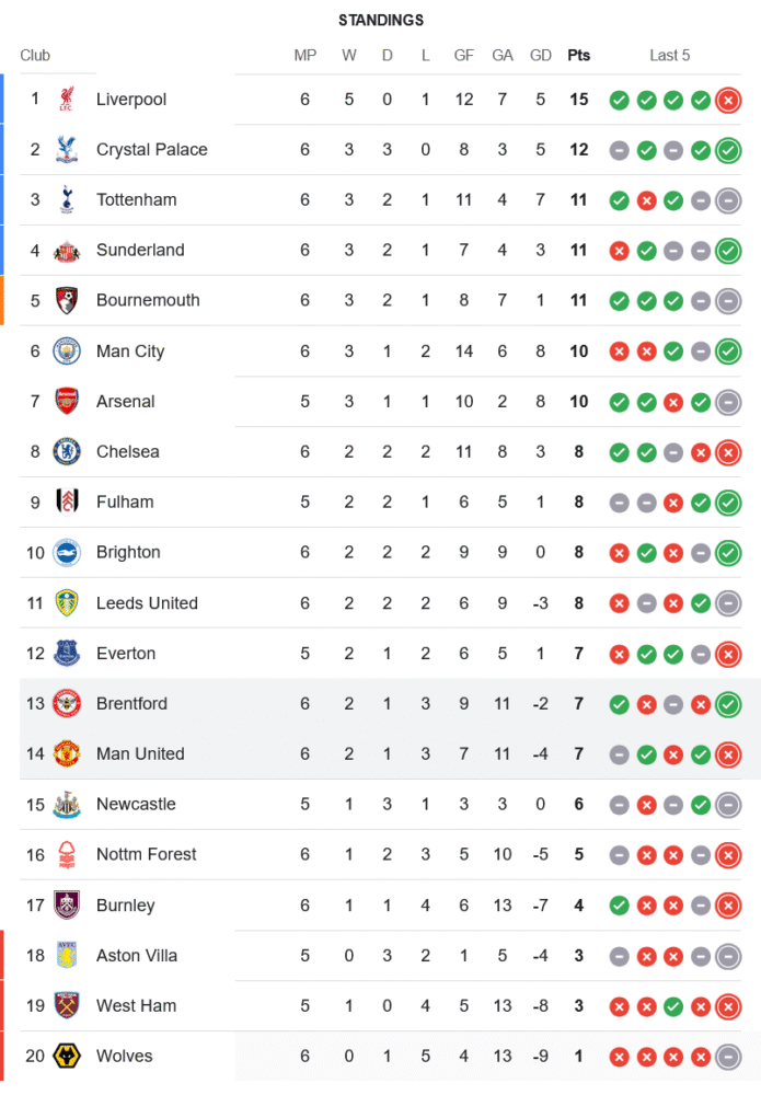 สามแต้มทำให้เบรนท์ฟอร์ดขยับมาอันดับ 13 มี 7 คะแนน ประตูได้เสีย -2 เหนือแมนฯ ยูไนเต็ดที่หล่นไปอันดับ 14 มี 7 คะแนนเท่ากันแต่ลูกได้เสีย -4 ความกดดันโยนใส่ฝั่งผีแดงทันที ก่อนเจอโปรแกรมหนักต่อเนื่อง ส่วน “ผึ้งพิฆาต” กำลังใจมาเต็มก่อนเข้าสู่เดือนที่ต้องบู๊กับทีมแกร่ง