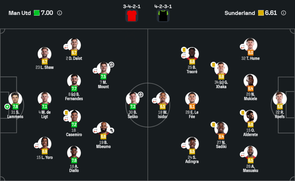 ⭐️ เซนนี่ แลมเมนส์ ผู้รักษาประตูแมนฯ ยูไนเต็ด คว้ารางวัลยอดเยี่ยมของเกมด้วยคะแนน 7.8 เซฟสำคัญหลายครั้ง โดยเฉพาะครึ่งหลังที่ช่วยรักษาคลีนชีตไว้ได้อย่างเด็ดขาด