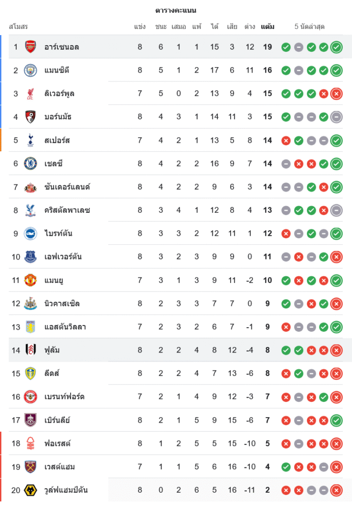 ชัยชนะนัดนี้ส่งให้ อาร์เซนอล เก็บเพิ่มเป็น 19 คะแนน รั้งจ่าฝูงของ ตารางพรีเมียร์ลีก อย่างเหนียวแน่น ขณะที่ ฟูแล่ม หล่นไปอยู่อันดับ 14 มีเพียง 8 คะแนนจาก 8 นัด ความกดดันเริ่มถาโถมเข้ามามากขึ้นในโซนล่าง