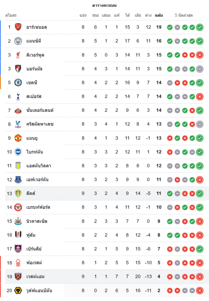 สามคะแนนพาลีดส์ขยับเป็นอันดับ 13 มี 11 แต้มจาก 9 นัด ถอนหายใจโล่งและมองไปข้างหน้าด้วยความมั่นใจ ด้านเวสต์แฮมยังอาการน่าเป็นห่วง รั้งอันดับ 19 มี 4 แต้มจาก 9 เกม ต้องเร่งฟอร์มด่วนเพื่อหนีโซนอันตราย