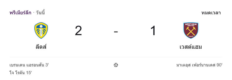 จาก : ผลบอลสด พรีเมียร์ลีก ระหว่าง ลีดส์ ยูไนเต็ด 2-1 เวสต์แฮมยูไนเต็ด วันนี้ 25/10/68 – บ้านกีฬา
