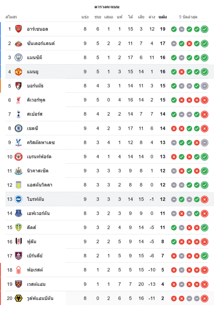 หลังคว้า 3 แต้มสุดสำคัญ แมนเชสเตอร์ ยูไนเต็ด ขยับขึ้นมาเก็บได้ 16 คะแนน อยู่อันดับ 4 ของตารางพรีเมียร์ลีก ไล่จี้จ่าฝูงอย่างอาร์เซน่อลเหลือเพียง 3 คะแนนเท่านั้น ส่วนไบรท์ตันยังคงมี 12 คะแนน หล่นลงไปอยู่อันดับ 13 ฟอร์มเริ่มแผ่วในช่วงหลัง ทำให้โอกาสลุ้นพื้นที่ยุโรปเริ่มยากขึ้น