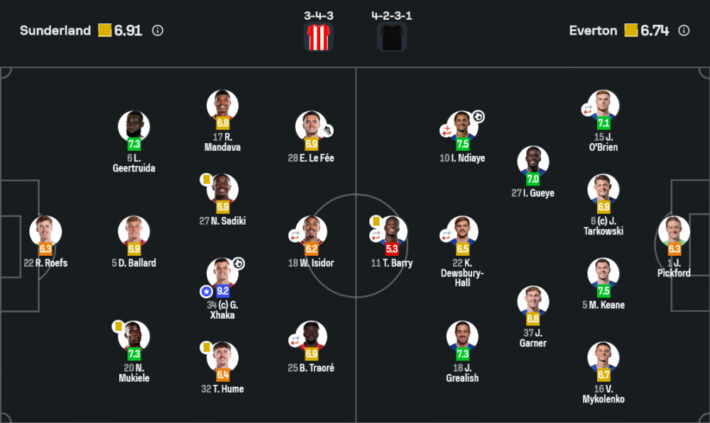 ฝั่งซันเดอร์แลนด์ ชัดเจนที่สุดคือ กรานิต ชาก้า ที่ทั้งยิง ทั้งบัญชาการเกม ส่วนฝั่งเอฟเวอร์ตันมี เอ็นดิอาย, ไมเคิล คีน และแจ็ค กรีลิช ที่เล่นได้น่าประทับใจ