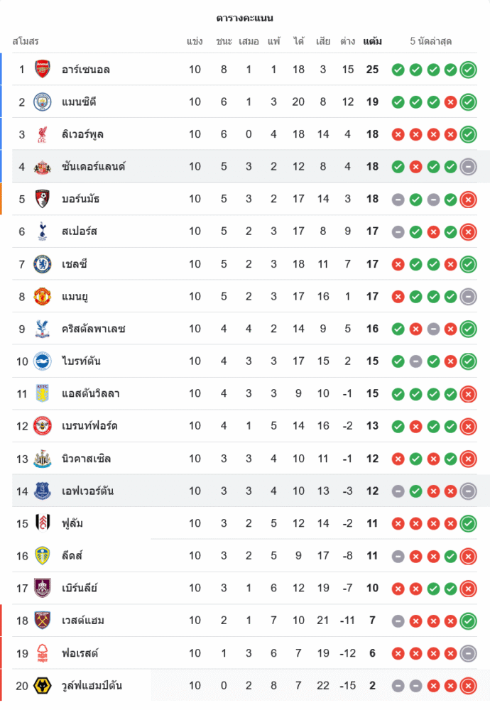 📌 สถานการณ์ในตารางคะแนนพรีเมียร์ลีก