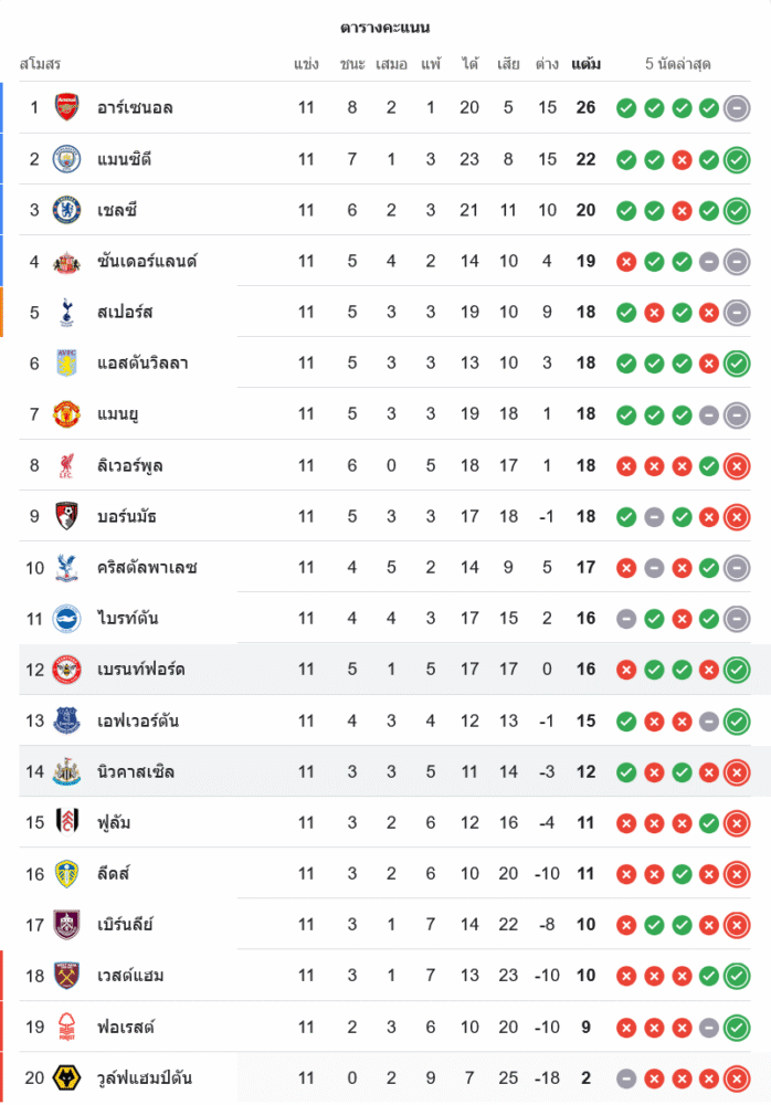 📌 สถานการณ์ในตารางคะแนนพรีเมียร์ลีก