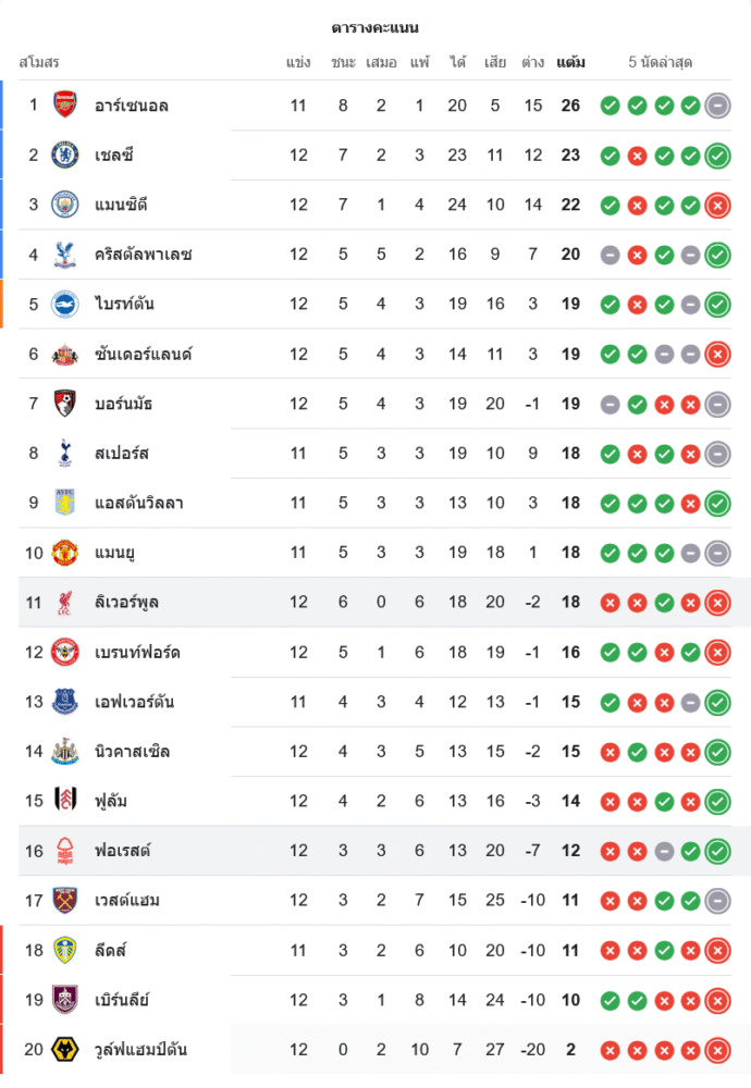 📊 สถานการณ์ในตารางคะแนนพรีเมียร์ลีก