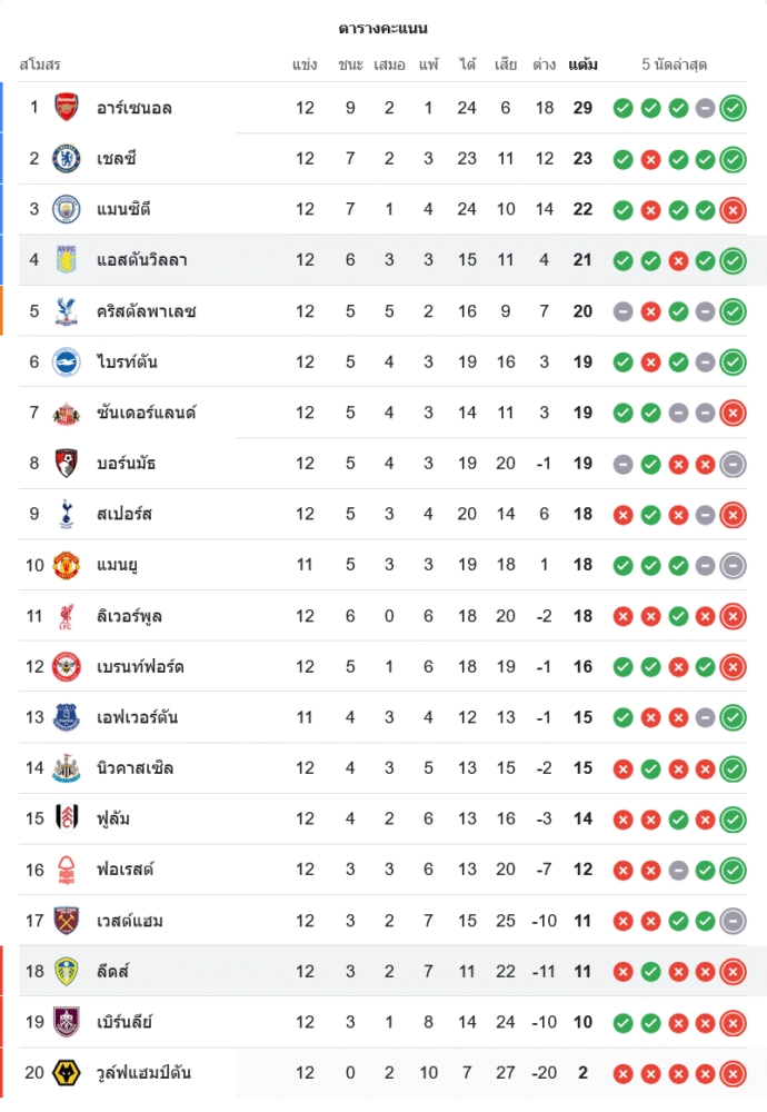 📈 สถานการณ์ในตารางคะแนนพรีเมียร์ลีก