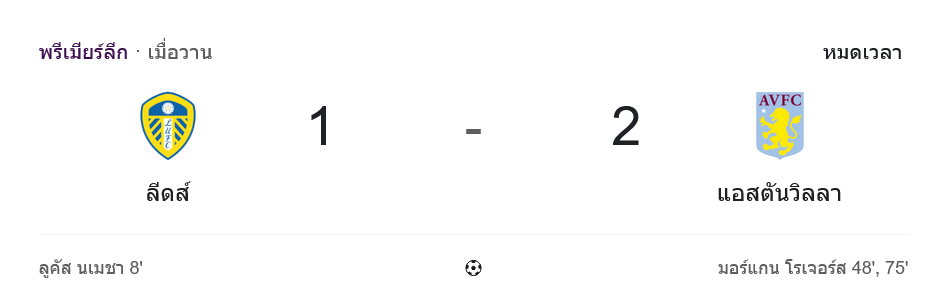 จาก : ผลบอลสด พรีเมียร์ลีก ระหว่าง ลีดส์ ยูไนเต็ด 1-2 แอสตัน วิลล่า วันนี้ 23/11/68 – บ้านกีฬา