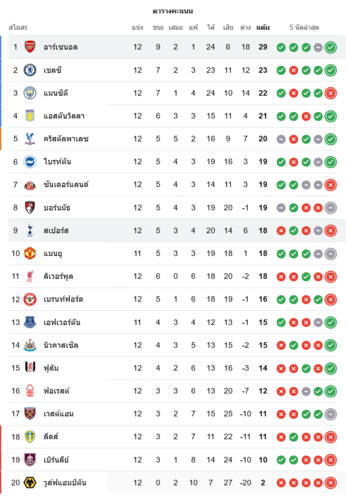 ชัยชนะนัดนี้ทำให้อาร์เซนอลแข่ง 12 นัด เก็บไปแล้ว 29 คะแนน จากผลงานชนะ 9 เสมอ 2 แพ้เพียงเกมเดียว ยิงได้ 24 เสียแค่ 6 ประตู สถิติเกมรับดีที่สุดในลีก และขยับนำเชลซี ทีมอันดับสองที่มี 23 คะแนน ห่างออกไปถึง 6 แต้ม สถานะ “จ่าฝูง” จึงยิ่งแน่นขึ้นไปอีก