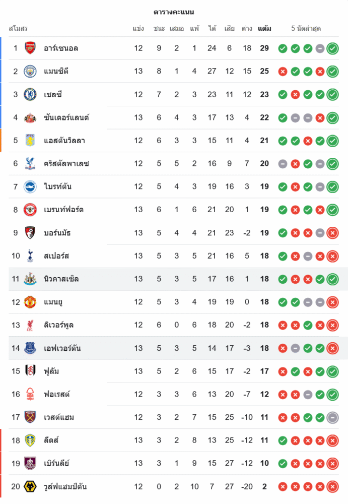 📌 สถานการณ์ในตารางคะแนนพรีเมียร์ลีก