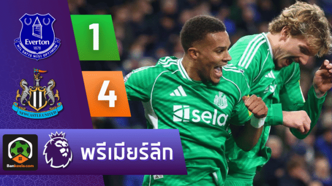 บ้านกีฬา พาไปเกาะติดพรีเมียร์ลีกเกมใหญ่ที่กูดิสัน พาร์ก ผลออกมาแบบโคตรเดือด สกอร์จากหน้าเว็บ บ้านผลบอล และหน้าจอ ผลบอลสด บอกชัด เอฟเวอร์ตันโดน นิวคาสเซิ่ล ยูไนเต็ด บุกมาถล่มถึงถิ่น 1-4